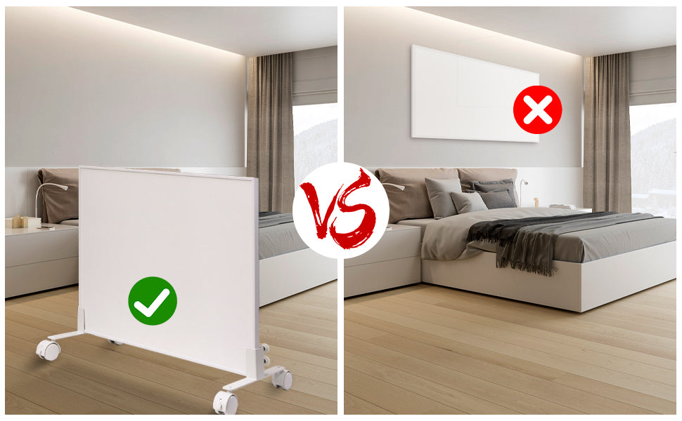 【Leicht zu bewegen】Mit dieser standfüsse Infrarotheizung lässt sich die Infrarotheizung flexibel und bequem an jeden gewünschten Ort in der Wohnung oder im Büro verlegen. die Räder können um 360° gedreht und arretiert werden, um ein Verrutschen der Heizung zu verhindern, sehr praktisch!